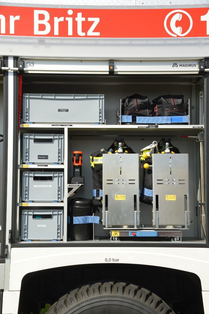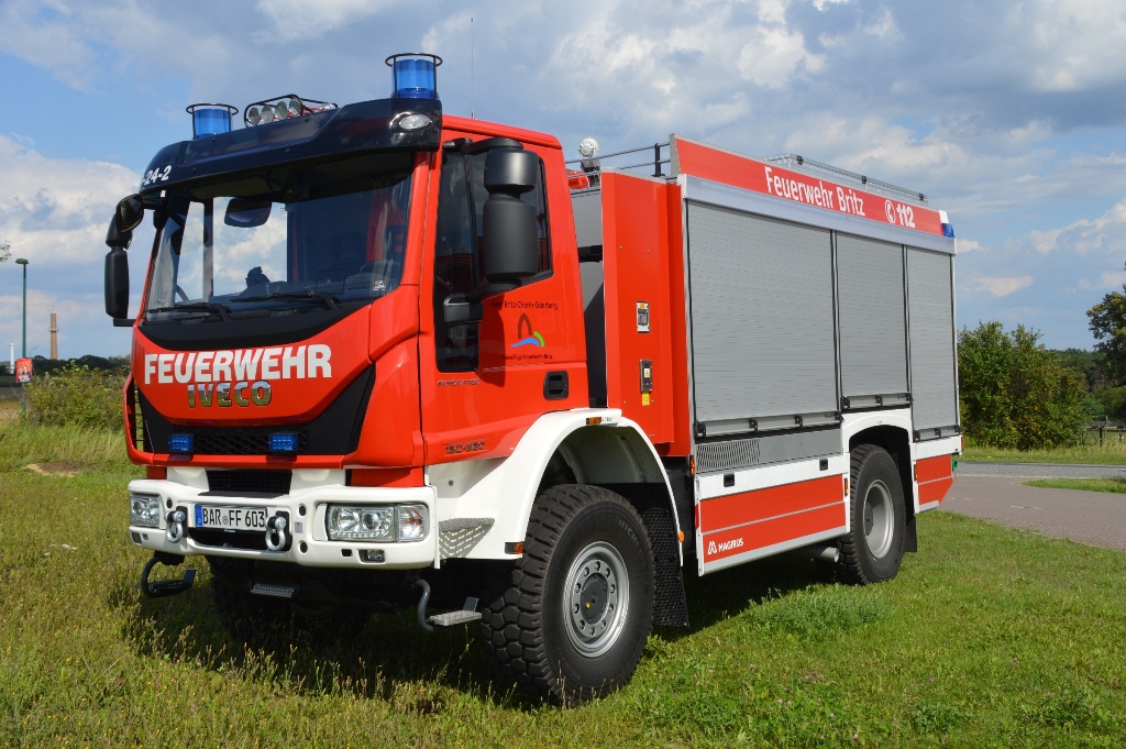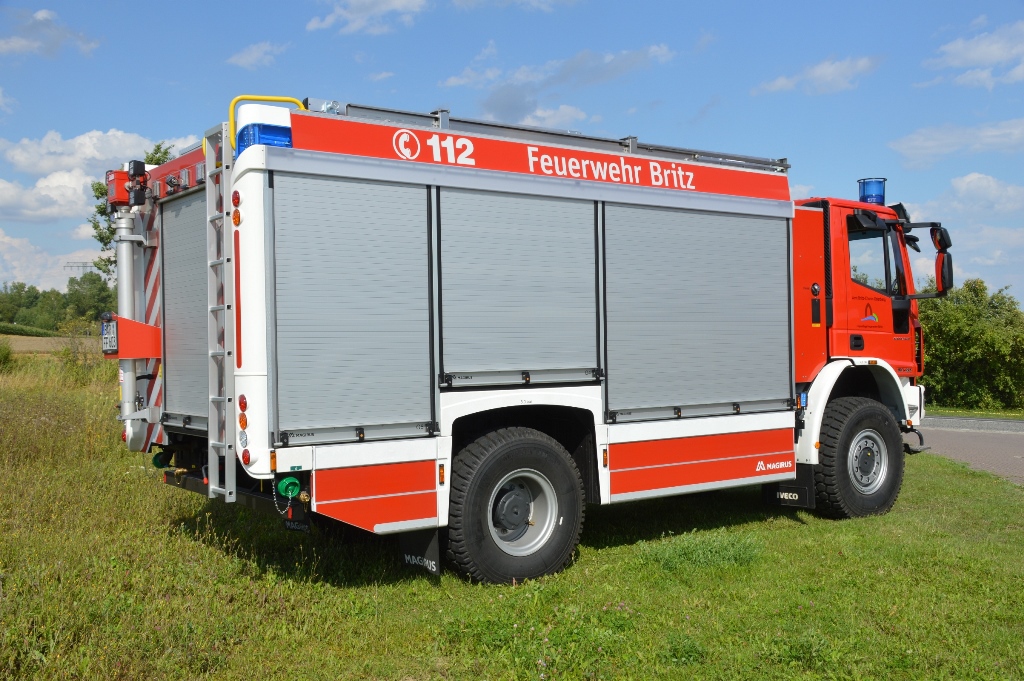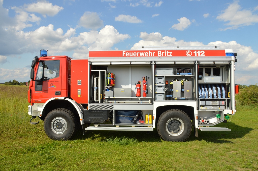 Das Tanklöschfahrzeug TLF4000 der Ortsfeuerwehr Britz ist speziell auf die Anforderungen der örtlichen Gegebenheiten angepasst. Die großen Waldflächen und die unzureichende Wasserversorgung in diesen Gebieten steht der 4.500-Liter-fassende Löschwasserbehälter entgegen. Ein Schaum-/ Wasserwerfer auf dem Fahrzeugdach, ein Schaummitteltank mit 500 Liter Fassungsvermögen, ein Lichtmast sowie die Heckwarneinrichtung gehören zur Ausstattung. Neben der Waldbrandausrüstung (D-Schläuche, D-Strahlrohre, mobiler Löschwasserbehälter 5.000 l) ist die Rettungsplattform mit Schienensatz sowie 2 Multifunktionsleitern verlastet.